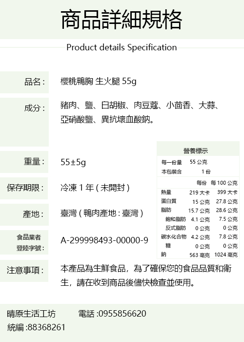 櫻桃鴨胸生火腿 建議「冷凍存放」